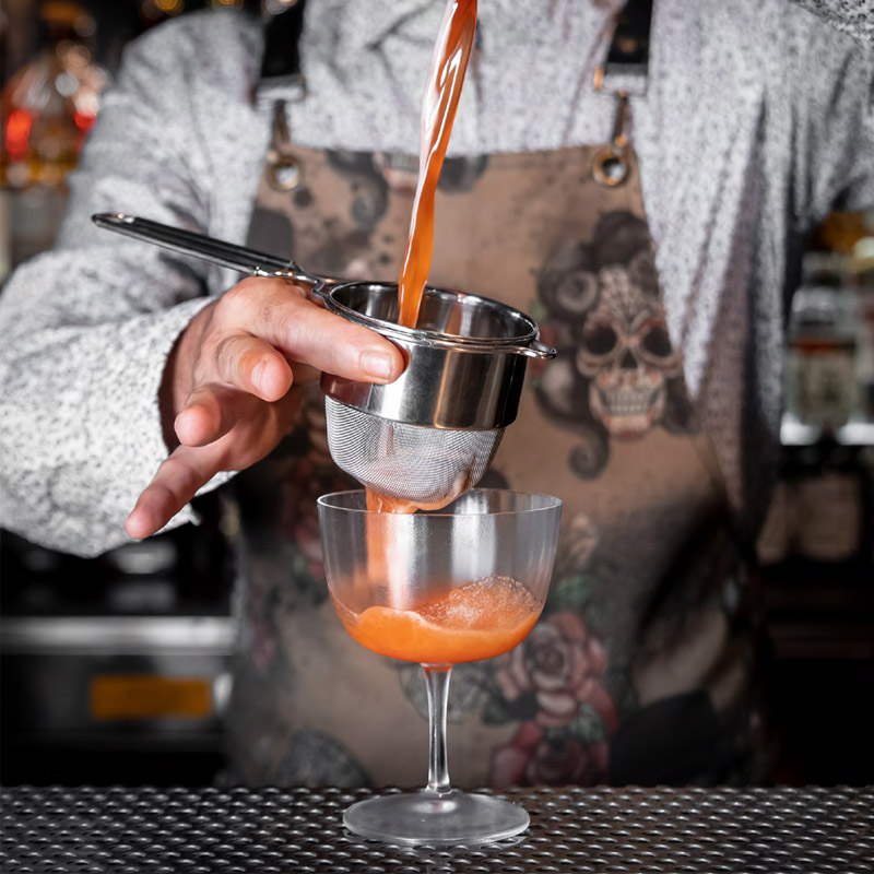 Barové sítko pro doble strain je důležitá pomůcka každého barmana. Slouží k zachycení pevnýck částic, jako jsou kousky ledu, dužnina z ovoce nebo citrusových plodů, koření atd. Vše, co je v koktejlu nežádoucí, zůstane v jemném sítku a koktejl bude krásně čirý. Barové sítko je vyrobeny v EU a to z kvalitního potravinářského nerezu AISI 304.