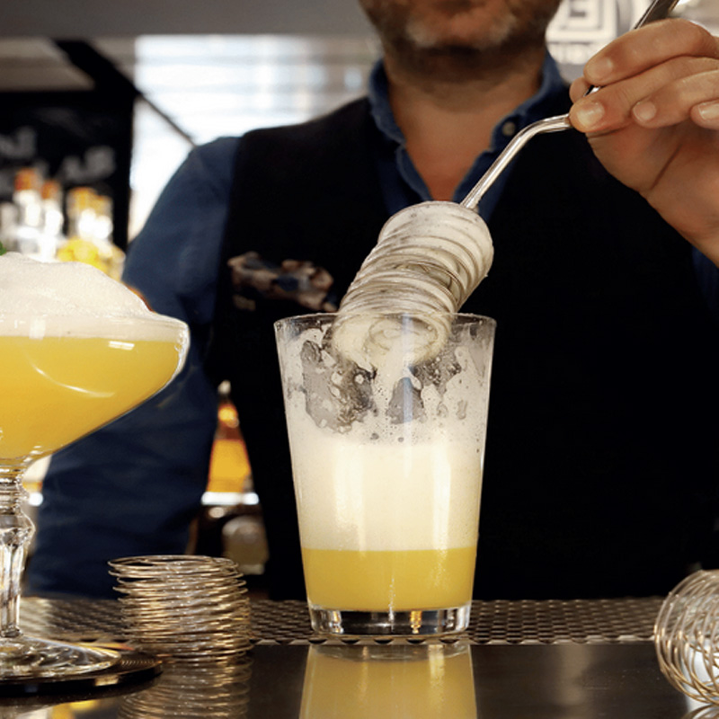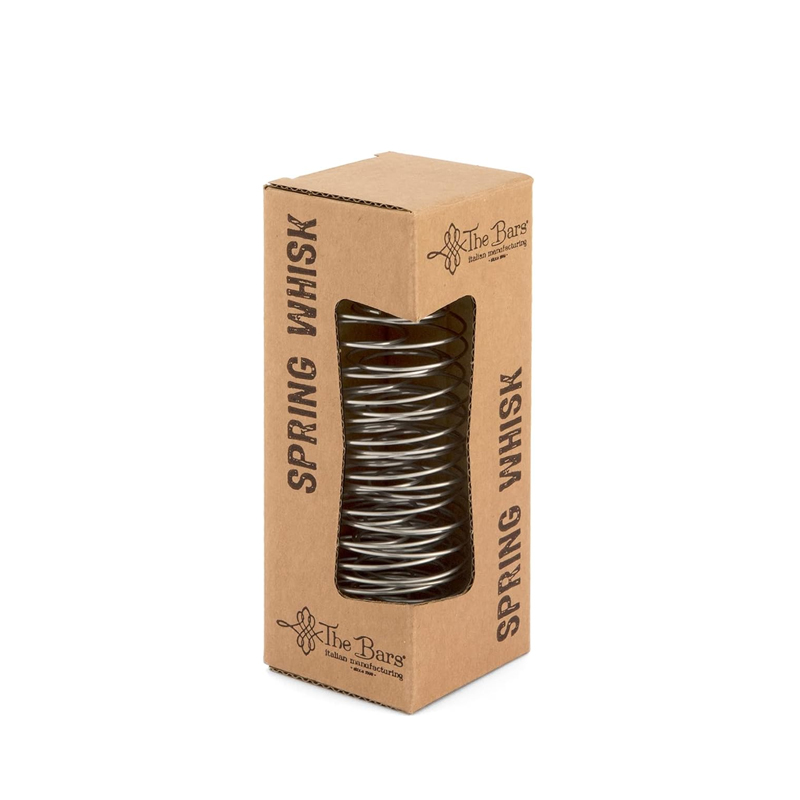 Nerezová pružina do šejkru o průměru 45 mm balená v papírové kraftové krabičce. Pružina se používá na přípravu koktejlů, u kterých chcete docílit větší pěnivosti. Jednoduše vložíte pružinu do šejkru s ledem a surovinami a po promíchání ji vyndáte pinzetou.