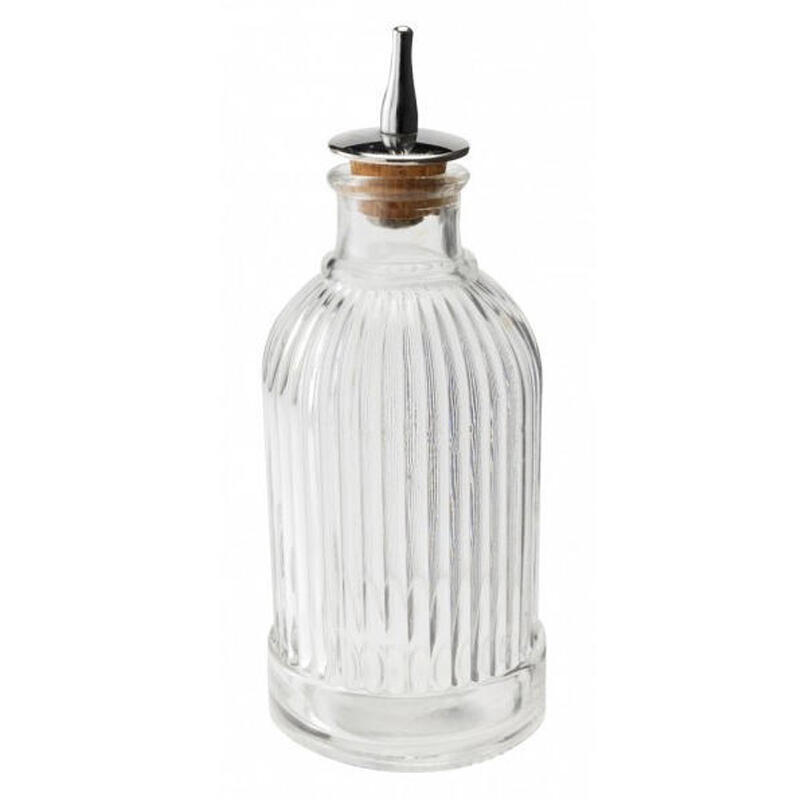 Flakon na bitter LIBERTY o objemu 200 ml s korkovým nalévátkem je vhodný na veškeré bittery a hořké přísady do koktejlů. Nalévátko nemá přisávání jako nalévátka do lahví na alkohol a proto je ideální na střiky a dávkování po kapkách.