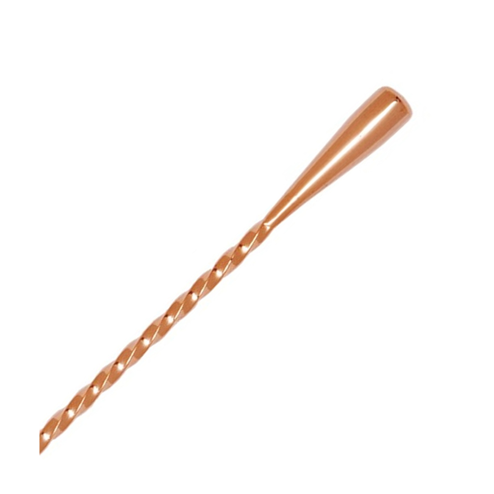Elegantní míchací lžička s jemným vinutím v měděném provedení o délce 45 cm. Nezbytná kamarádka míchací sklenice k přípravě klasických koktejlů. Vinutí v celé délce lžičky je ukončeno frapovací slzou a zabraňuje proklouznutí lžičky v ruce.