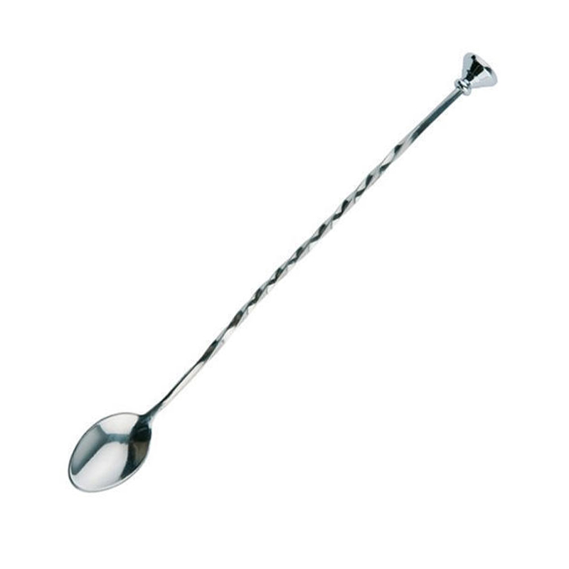 Míchací lžička s drtítkem - muddlerem o délce 28 cm. Drtítko slouží k rozmačkání cukru, bylinek, lístků máty, dužniny z ovoce a všech malých jemných ingrediencí, které jsou součástí koktejlu.