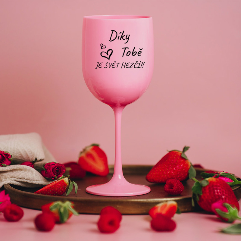 Plastová sklenice na víno RŮŽOVÁ - Díky tobě je svět hezčí