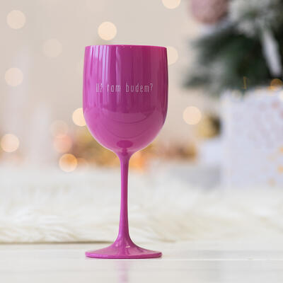 Plastová sklenice na víno o objemu 480 ml v růžové barvě s potiskem. Sklenice je vyrobena z polykarbonátu, tudíž je "nerozbitná" a vhodná na zahradní párty, k bazénu, na pláž, na kempování, výlety a pikniky... Je lehká a od skla k nerozeznání. Nejedná se o jednorázový plast, doporučujeme mytí v ruce hladkou houbičkou.