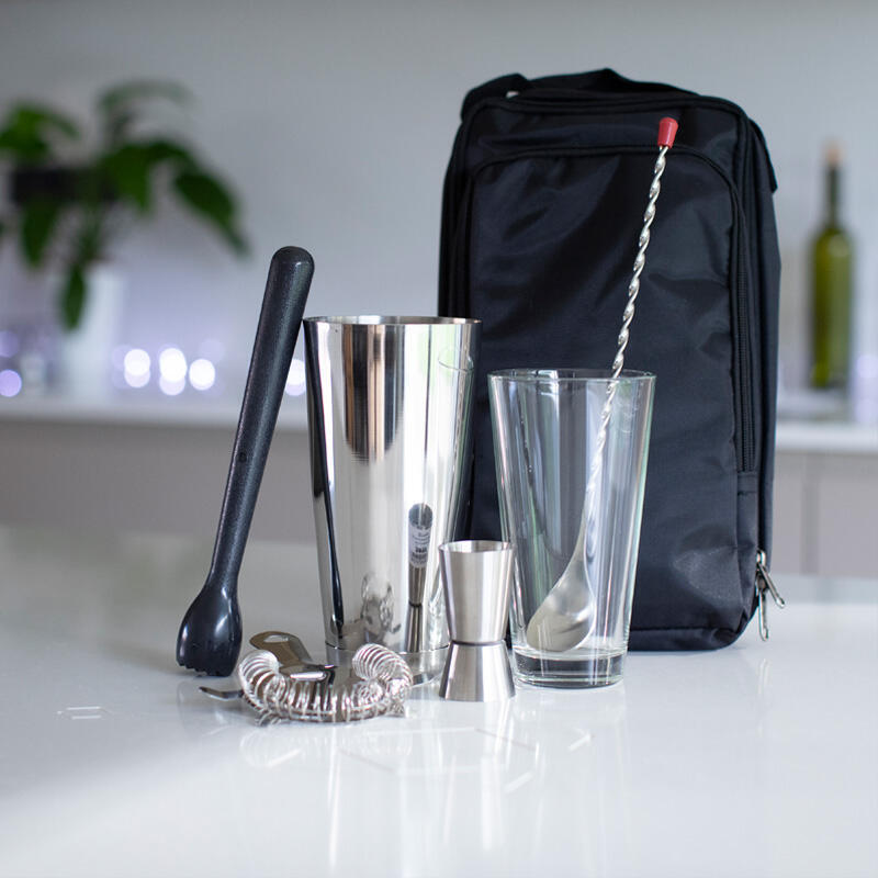 Hobby bar batoh je cenově zvýhodněný set barového vybavení zabalený v praktické nylonové tašce s dvěmi kapsami se zipy. Díky omyvatelné nylonové tašce máte své barové vybavení na jednom místě a vždy připraveno k použití.
