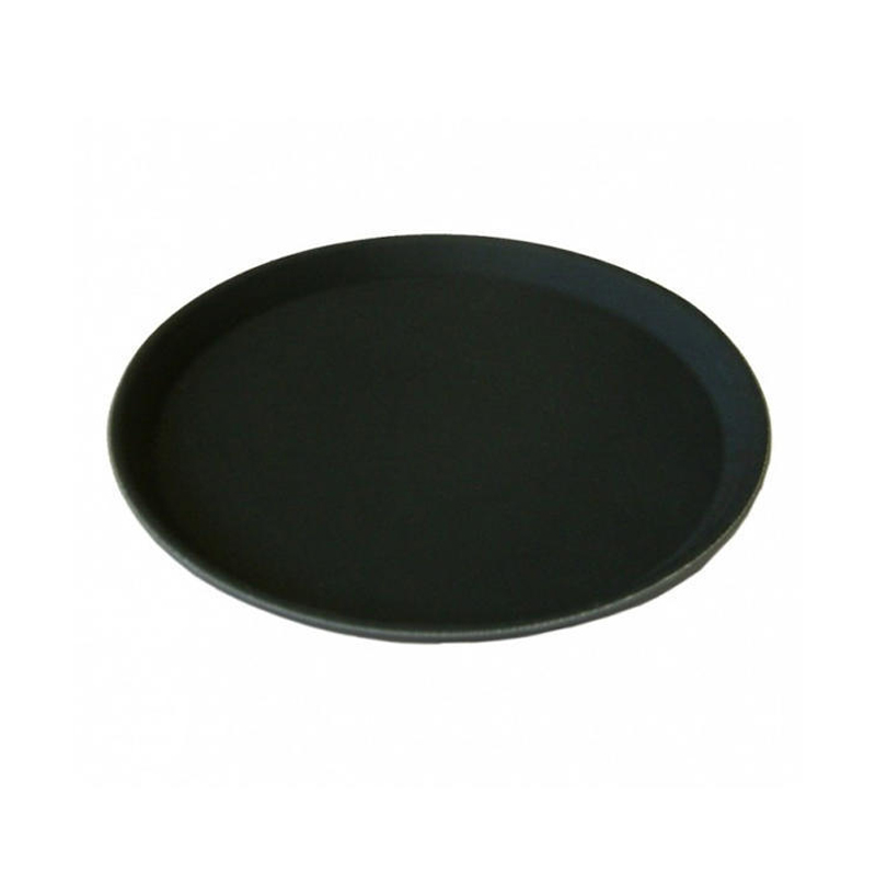 Servírovací plato pro servis a obsluhu v černé barvě o průměru 40 cm. Plato je vyrobeno z kvalitní pružného plastu, po celém obvodu je lemováno nízkým okrajem, a horní část je opatřena hrubým protiskluzovým povrchem. Jedná se o největší platíčko z nabídky, vhodné je převážne pro restaurace a velké provozy.