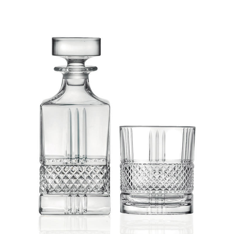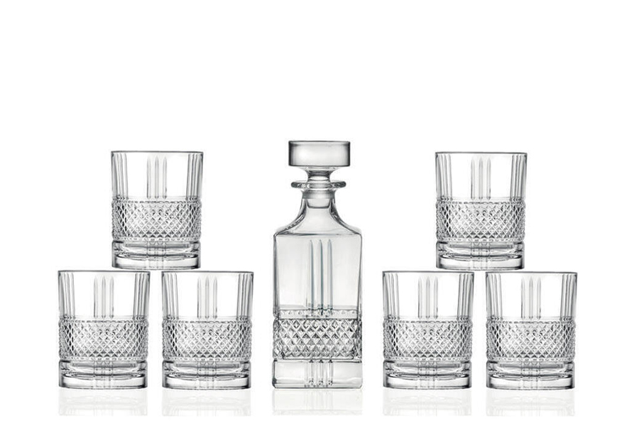 Skleněný set na whisky Brillante, který se skládá z krásně zdobené "broušené" karafy o objemu 750 ml na whisky a 6 designových sklenic o objemu 337 ml z italské sklárny RCR CRYSTAL. Luxusní doplněk vaší kanceláře nebo domácího baru, který bude obdivovat každá návštěva.