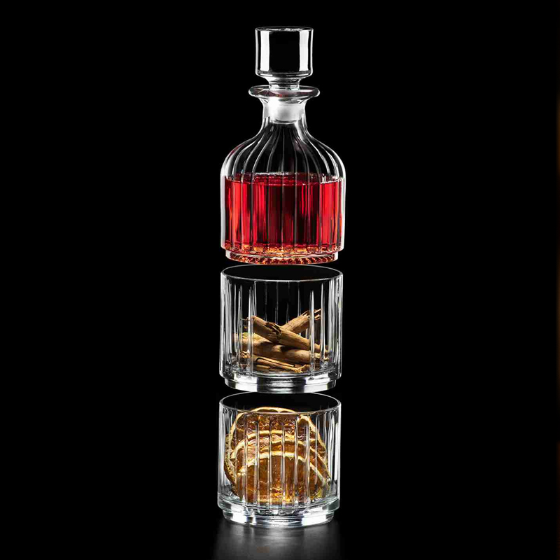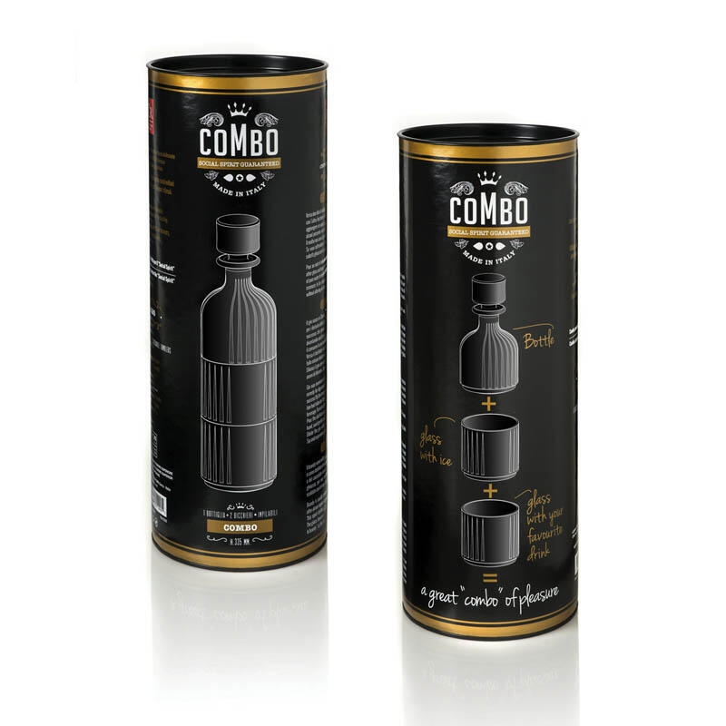 Skleněný set na whisky Combo, který se skládá z krásně zdobené "broušené" karafy o objemu 320 ml na whisky a 2 designových sklenic o objemu 367 ml z italské sklárny RCR CRYSTAL. Luxusní doplněk vaší kanceláře nebo domácího baru, který bude obdivovat každá návštěva.