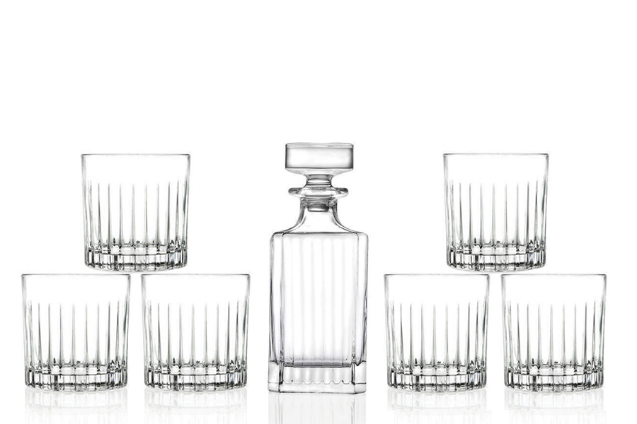 Skleněný set na whisky Timeless, který se skládá z krásně zdobené "broušené" karafy o objemu 750 ml na whisky a 6 designových sklenic o objemu 310 ml z italské sklárny RCR CRYSTAL. Luxusní doplněk vaší kanceláře nebo domácího baru, který bude obdivovat každá návštěva.