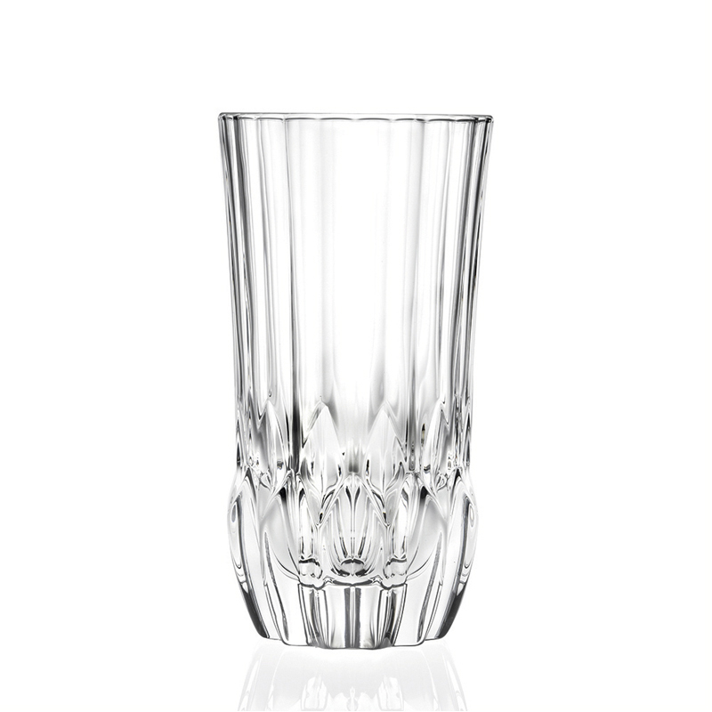 Zdobená lisovaná sklenice highball Adagio o objemu 400 ml s moderním designem "brusu" z italské sklárny RCR CRYSTAL. Stabilní sklenice se silným dnem vhodná na dlouhé koktejly, džusy, vodu nebo domácí linonádu.