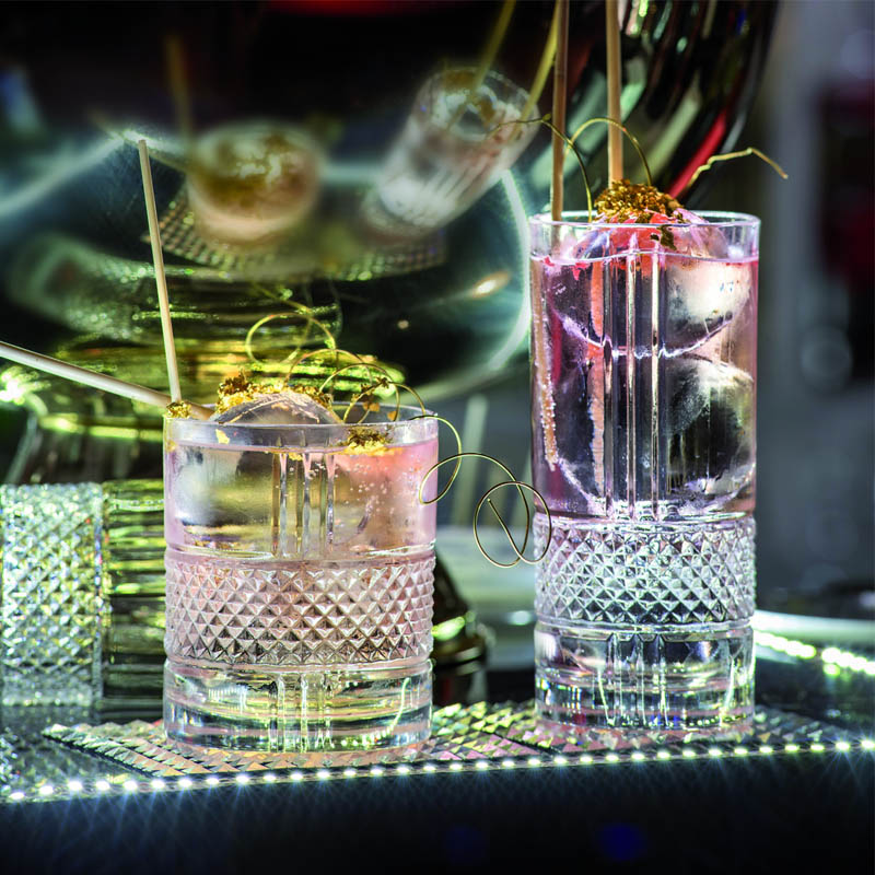 Zdobená lisovaná sklenice highball Brillante o objemu 370 ml s moderním designem "brusu" z italské sklárny RCR CRYSTAL. Stabilní sklenice se silným dnem vhodná na dlouhé koktejly, džusy, vodu nebo domácí linonádu.