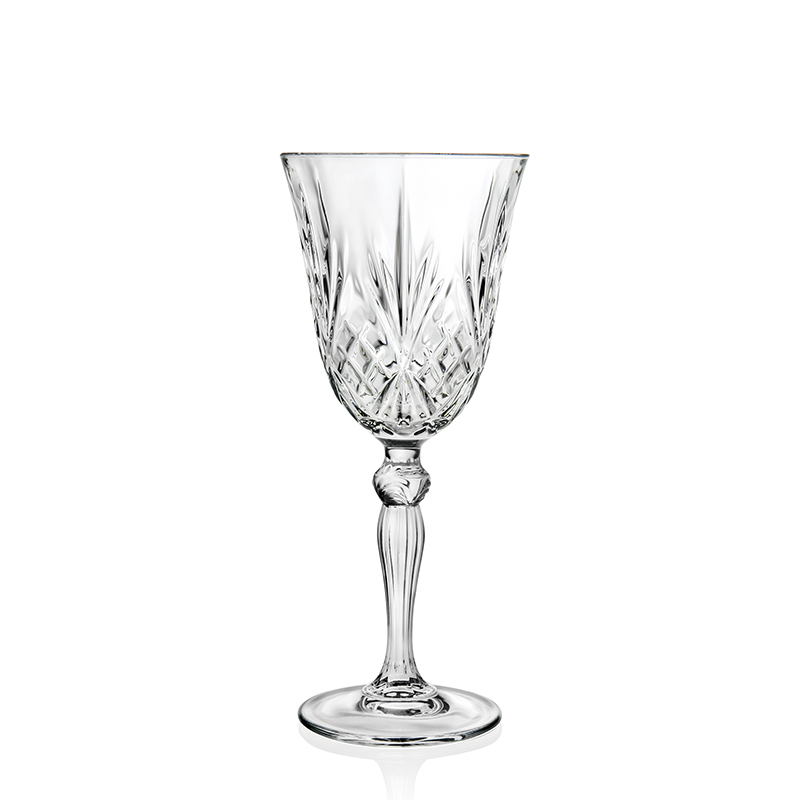 Zdobená lisovaná sklenice na koktejly Melodia o objemu 210 ml s moderním designem "brusu" z italské sklárny RCR CRYSTAL. Stabilní sklenice s krásně zbobenou nožičkou vhodná pro servis krátkých nápojů.