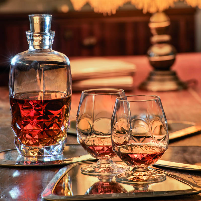 Zdobená lisovaná sklenice na koňak Alkemist o objemu 532 ml s moderním designem brusu z italské sklárny RCR CRYSTAL. Sklenice je určená primárně pro podávání koňaku, ale je možné ji použít také na jiné destiláty jako degustačku a nebo na domácí limonádu.