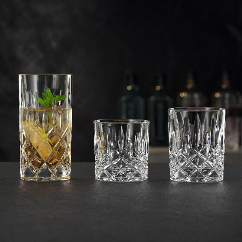 Jak už název série Noblesse napovídá, sklenice svým designem působí zcela noblesně a mají velmi krásný, nadčasový dekor. Toto sklo je vyrobeno z křišťálového skla. Silné dno dává sklu velmi dobrý stojan a stabilitu.