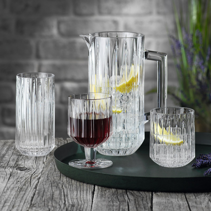 Novinka Nachtmann Jules, která nahrazuje serii Nachtmann Prestige. Sklenice vhodná na whisky, Old Fashioned, Negroni nebo třeba jen vodu Vás v každém případě okouzlí svým jedinečným vzhledem, který využívá spojení lomeného světla a vysoké brilance. Sklenice jsou vyrobeny z bezolovnatého křišťálového skla, které je dokonale transparentní.