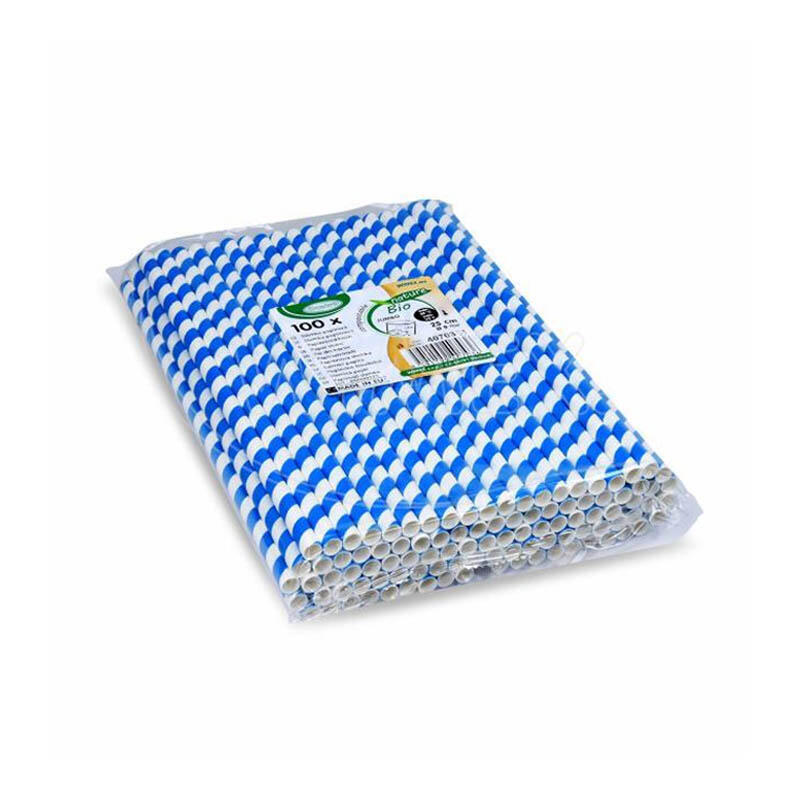Papírová brčka nebo také slámky v modro/bílé barvě o délce 25 cm a průměru 8 mm jsou ekologická, šetrná k přírodě a biologicky rozložitelná. Brčka jsou vyrobena z papíru, neobsahují plasty a jsou biologicky odbouratelné a recyklovatelné. Fungují jako asi nejlepší alternativa k tradičním plastovým brčkům, vynikají svou pevností a stálostí při použití v drinku.