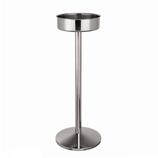 Stojan na chladiče lahví z leštěného nerezu. Výška stojanu je 64 cm a horní průměr 19 cm, je tedy vhodný pro všechny námi nabízené nerezové, hliníkové a plastové chladiče. Vysokou stabilitu zajišťuje těžká základna stojanu a velkou výhodou je také vysoký okraj misky, do které se chladič vkládá. Díky stojanu chladič nepřekáží hostům na desce stolu a zajistí tak vyšší komfort.