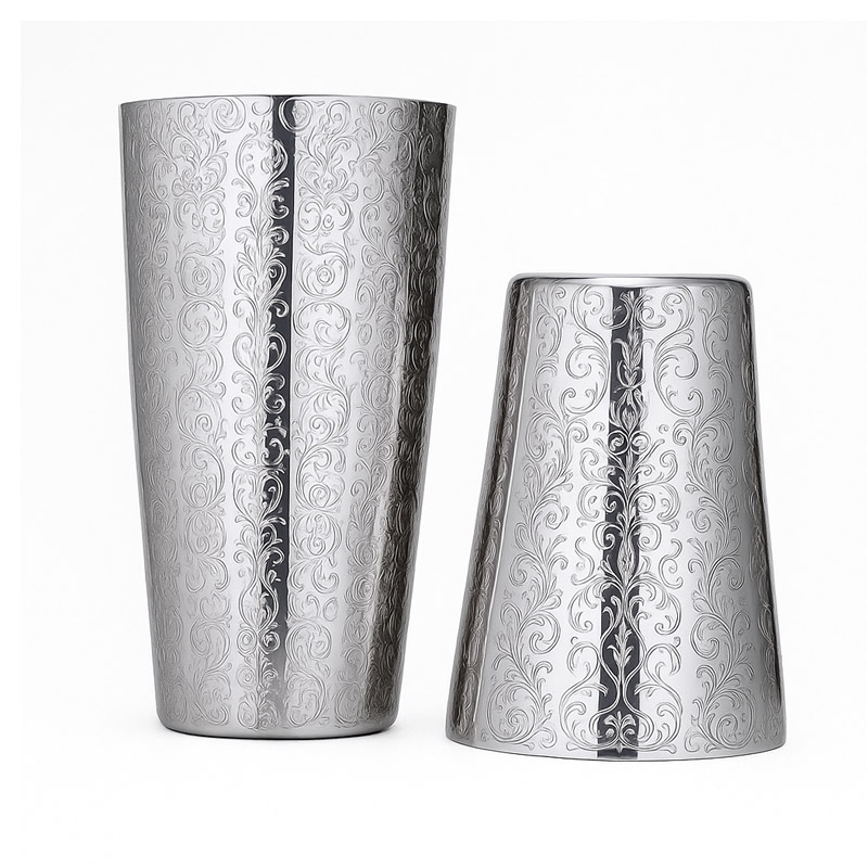 TATTOO set je prémiový nerezový set šejkrů z vysoce kvalitní nerezové oceli AISI 304, skládá se ze dvou šejkrů o velikosti 830 a 530 ml a je to ideální dvouporcový šejkr. Povrch šejkrů je leštěný s nevšením TATTOO vzorem.