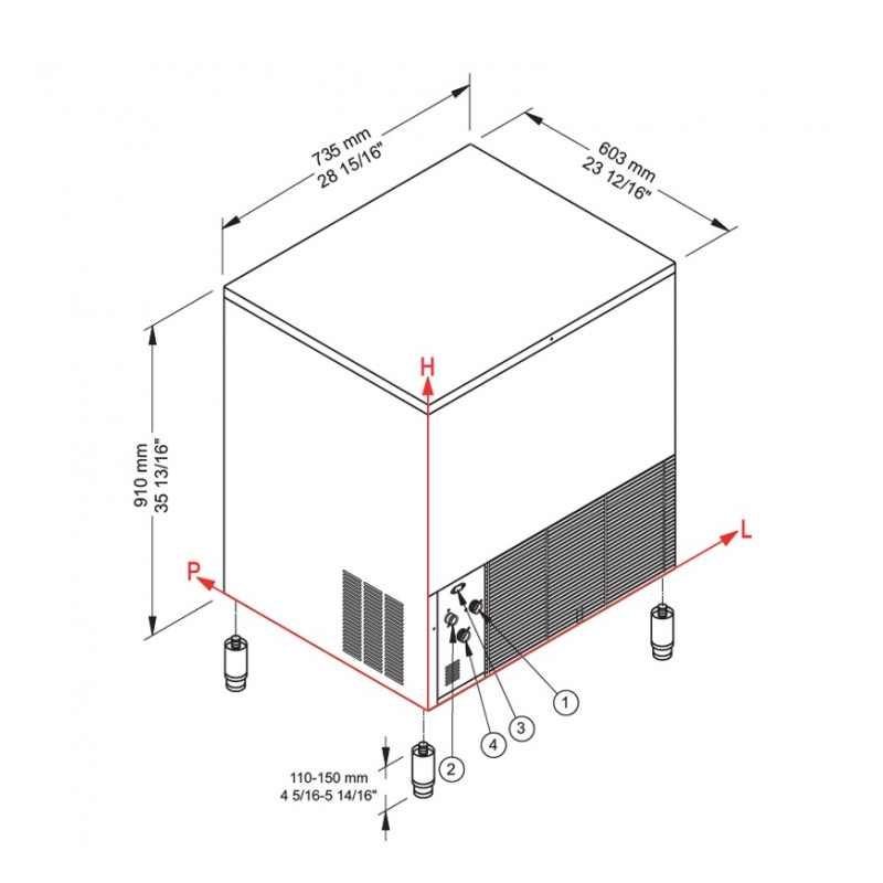 Výrobník ledu volně stojící. Při nákupu je třeba promyslet chlazení stroje - voda/vzduch.